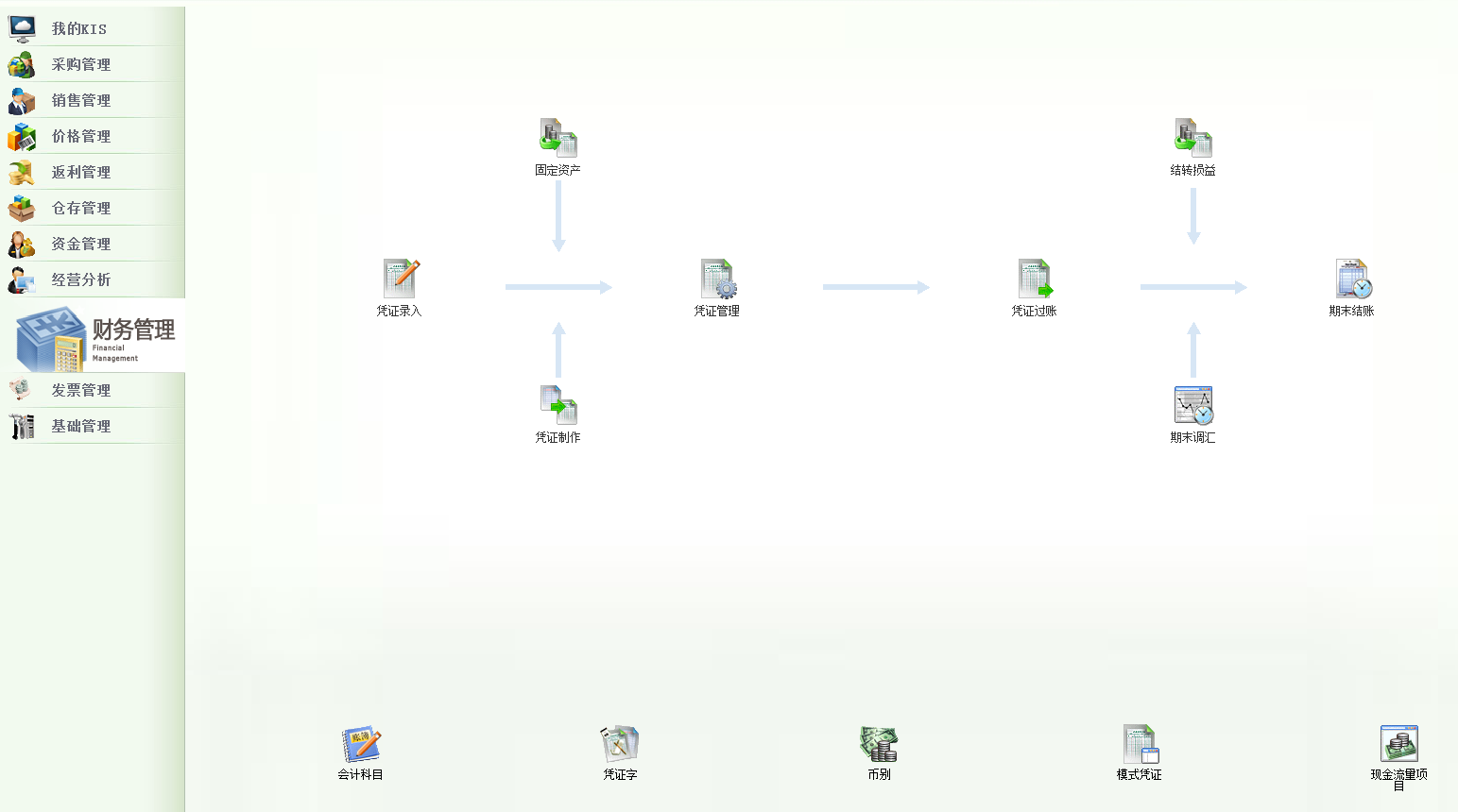 金蝶KIS商贸版v7.0新增改进功能:新增小企业会计准则科目体系、经营分析、移动管理、简易现金流量表、现金银行账功能,帮助小型商贸企业适应新的会计核算标准及提升商务管理效率