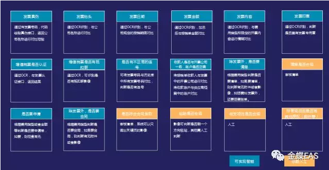其他一些项目,则要依赖人工审批。例如:附件清单是否合规、付款是否符合合同条款、单据粘贴是否合规、收支项目是否合规、非常规项目是否有其他授权(授权审批结果)。