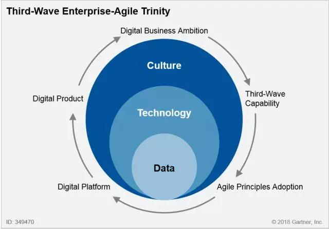 选定好了方向,就遇到一个很实际的问题,要转型成一家数字化企业,该怎么转?拥有什么样的企业内核才能够称之为数字化企业呢?熟练应用云计算、大数据的企业?扁平化组织架构的企业?还是极力拥抱创新及拥有创新氛围的企业?可以说都是,但又都不是(手动滑稽)。对于这个问题的答案,我可没有决定权,这就需要来引用权威爸爸的话了。本号作为一个英语还凑合的多(bu)功(yao)能(lian)官微,在逛了一圈Gartner的官网后,发现了以下这张图: